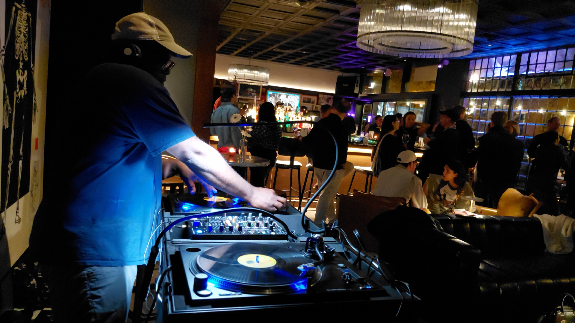DJ Mech Spinning Records @ Alive & Well for Xmas Party -12/6