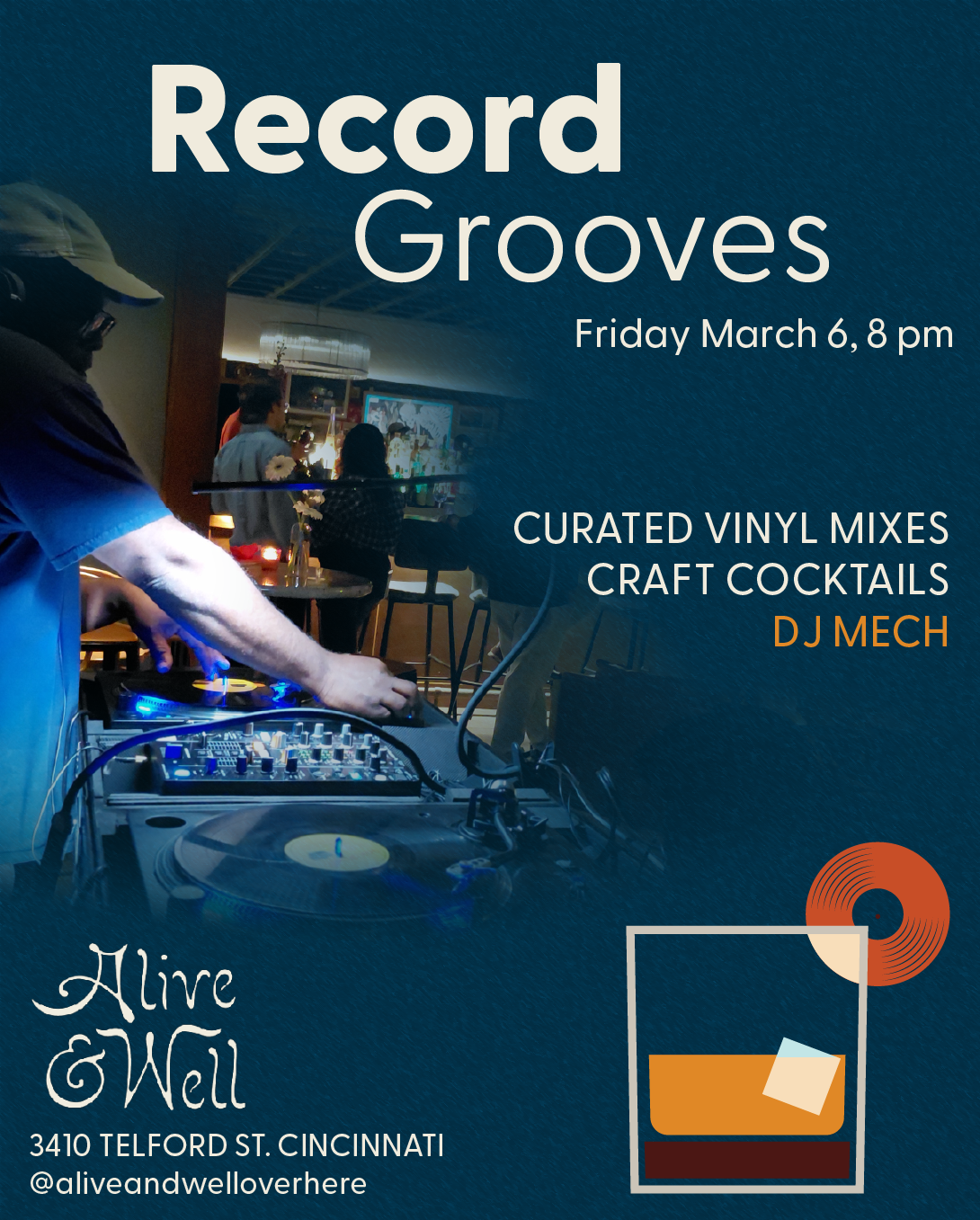 I will be spinning some records at Alive & Well, 3410 Telford St. in Cincinnati on Friday March 6th! Come on out for a great time with some fun tunes and extra special drinks! |